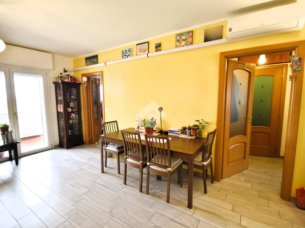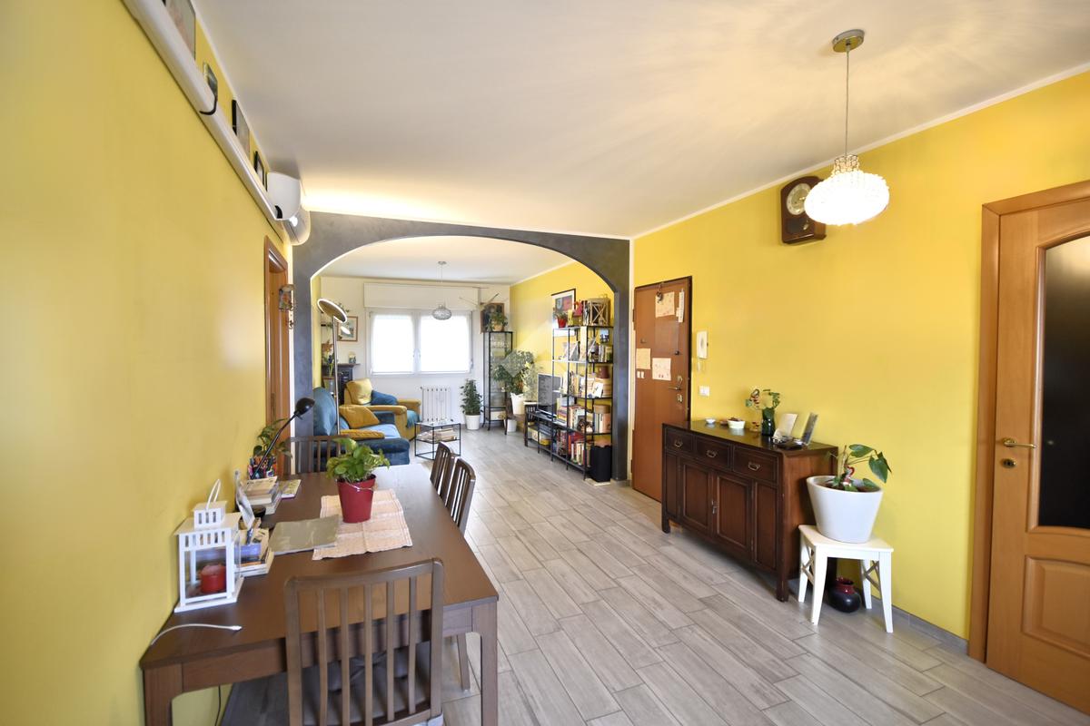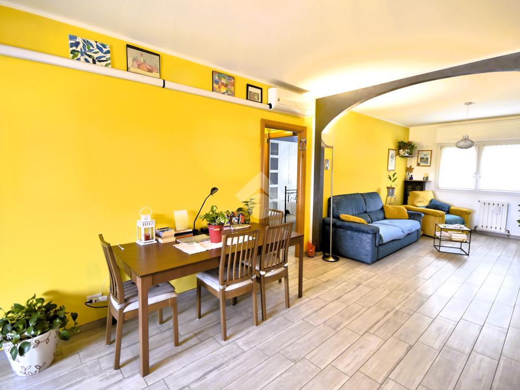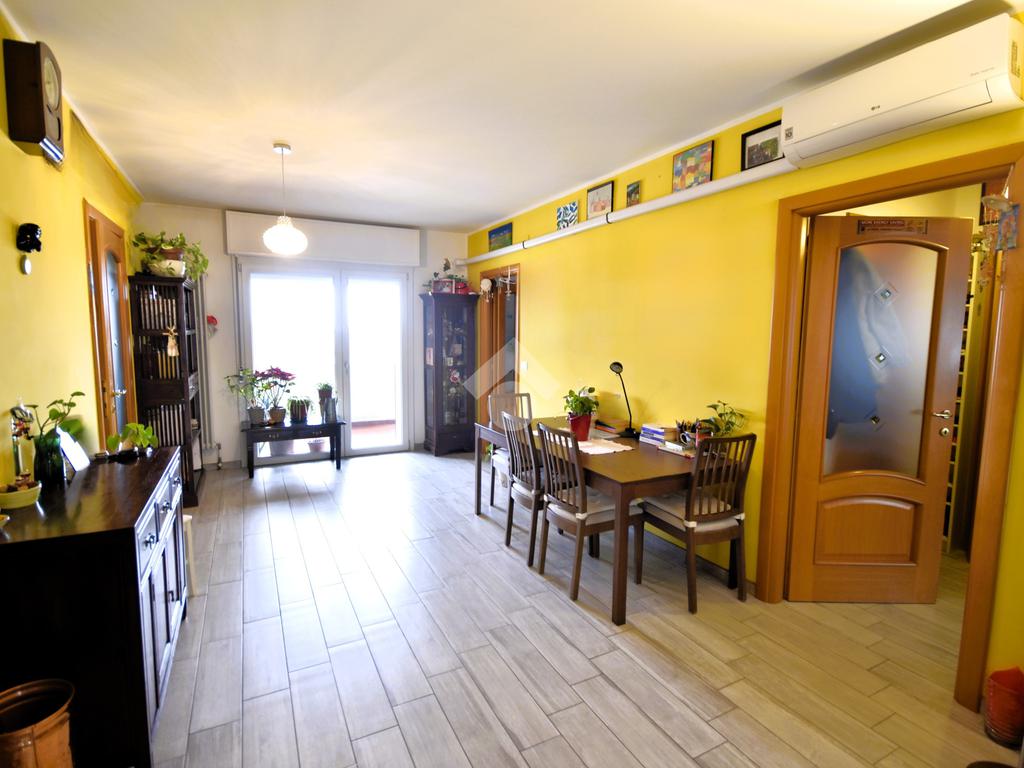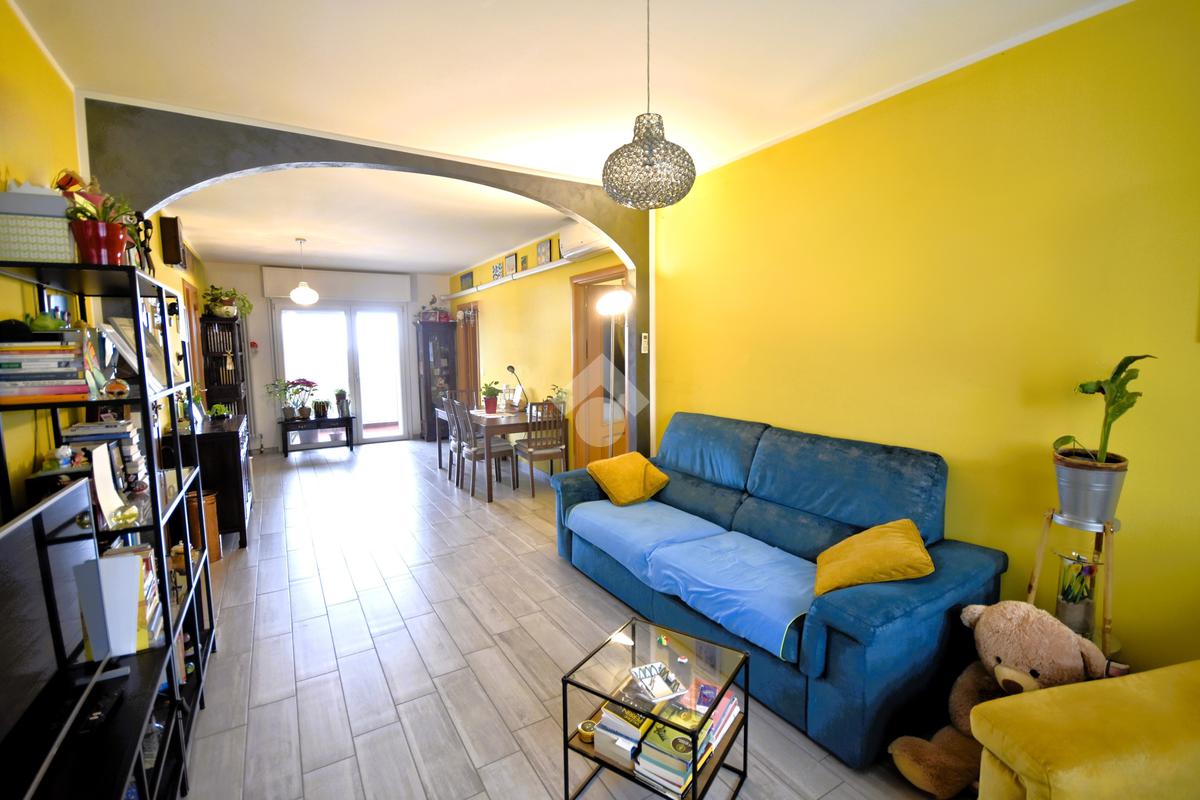In zona semi-centrale del paese, nelle vicinanze delle scuole e dei servizi primari, proponiamo un appartamento di 85 mq situato al piano terzo con ascensore (piano nobile) dello stabile. L'immobile, ristrutturato nel 2020 in tutte le sue parti, offre ambienti accoglienti e funzionali; è composto da quattro locali: un' ingresso living attraverso un portoncino blindato sull'ampia sala doppia di circa 40 mq, con la possibilità di ripristinare la seconda camera da letto a seconda delle proprie esigenze familiari. Attraverso una comoda porta con apertura a libro, si accede alla cucina abitabile, dalla forma quadrata, consentendo l'utilizzo della mobilia su tre lati della stanza. La presenza di un terrazzo aggiunge un tocco di spazio esterno, ideale per momenti di relax; si accede dalla sala, arricchito di tende da sole estive/invernali, con vano caldaia per la produzione dell'acqua calda igienico/sanitaria. Un disimpegno separa la zona giorno con la zona notte, dove troviamo una camera matrimoniale confortevole, con presenza di ampia finestra, un bagno finestrato con doccia, due comodissimi ripostigli, di cui uno adibito a lavanderia con appositi attacchi idraulici; il secondo ripostiglio è posizionato subito all'ingresso, presente nella sala. La soluzione presenta una pavimentazione e rivestimenti in grès porcellanato nella sua totalità, ad eccezione del parquet nella stanza matrimoniale; impianti elettrico e idraulico rivisti totalmente; serramenti in PVC con vetro camera e aperture a vasistas; porte interne in legno con vetro satinato e zanzariere sulle aperture. L'appartamento è dotato di un sistema di climatizzazione, con due climatizzatori LG inverter, uno posizionato nella zona giorno (sala doppia) e l'altro nel disimpegno della zona notte, garantendo comfort in ogni stagione. Un ulteriore vantaggio è rappresentato dal pannello fotovoltaico personale, con batteria di accumulo da 10 KW, che si affianca ai pannelli fotovoltaici per le parti comuni, assicurando un'efficienza energetica ottimale. Nel 2022 il fabbricato ha subito l'intervento del Superbonus 110%, con il rifacimento facciata, con la realizzazione del cappotto termico, infissi totalmente sostituiti, tetto realizzato nella sua totalità, pannelli fotovoltaici per le parti comuni e a richiesta dei singoli condomini, l'installazione personale dei pannelli come per tale appartamento, con riduzione e netto ammortamento in bolletta. Completa la proprietà un posto auto riservato e di prorpietà. Le spese di gestione a carattere condominiale ammontano per Euro 40,00 circa mensili con acqua a parte a consumo; la quota fissa del riscaldamento del 30 % è pari ad 355,00 annui. Vista panoramica sul centro paese e colline. Possibilità di richiedere un mutuo Green data la sua classe energetica efficiente (A1).