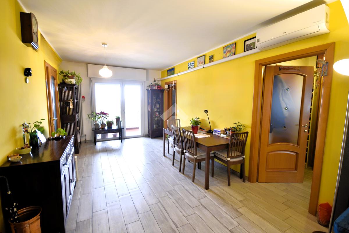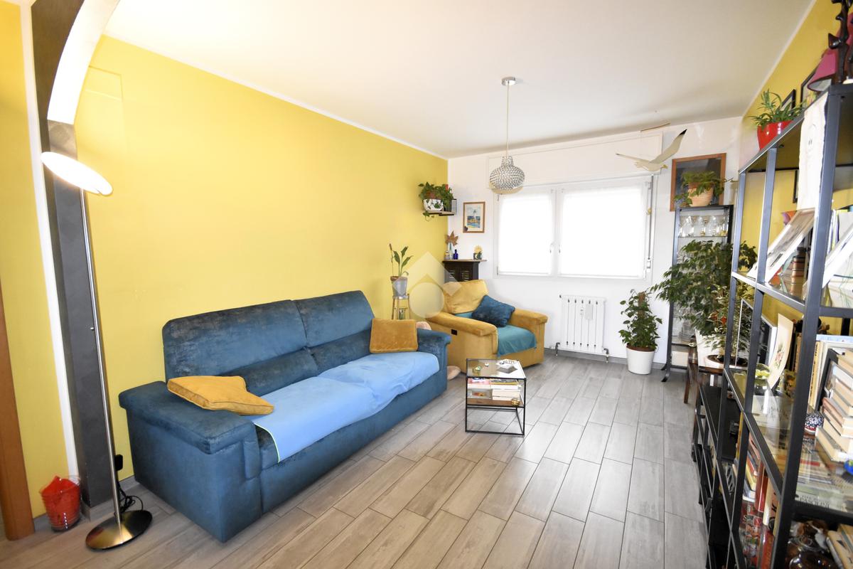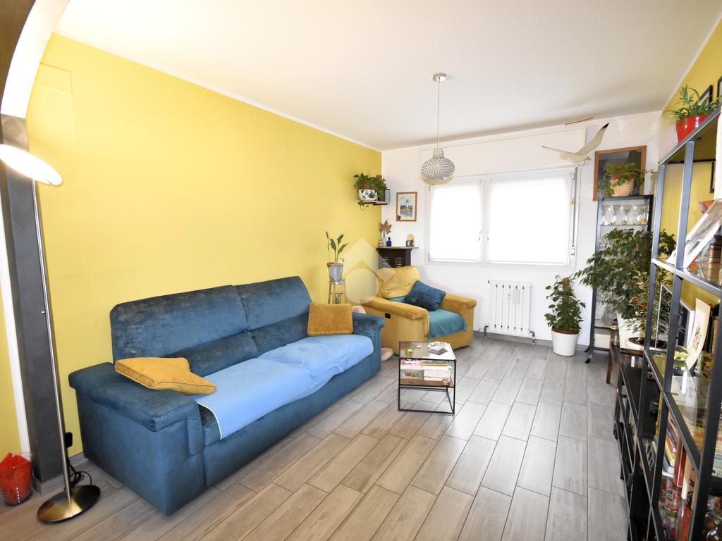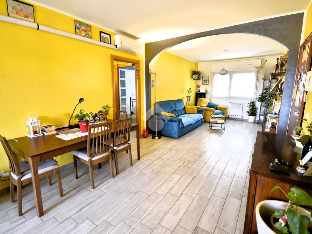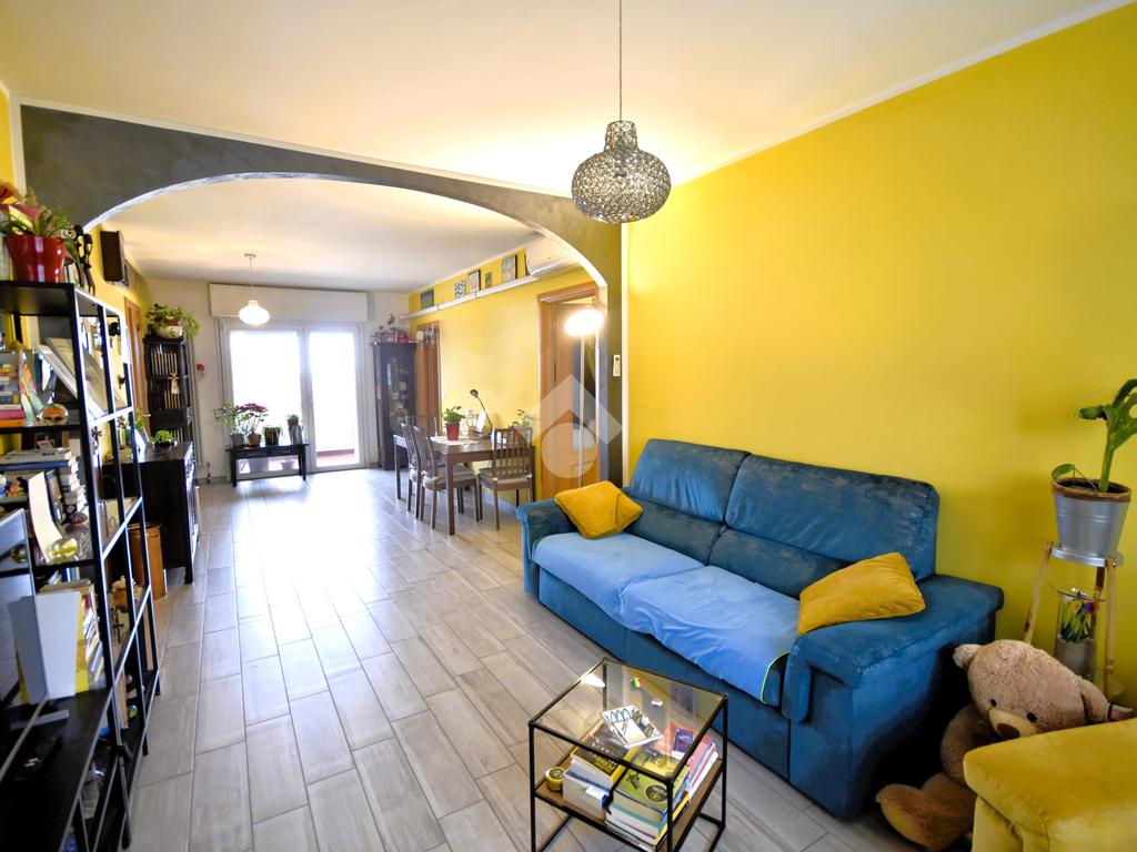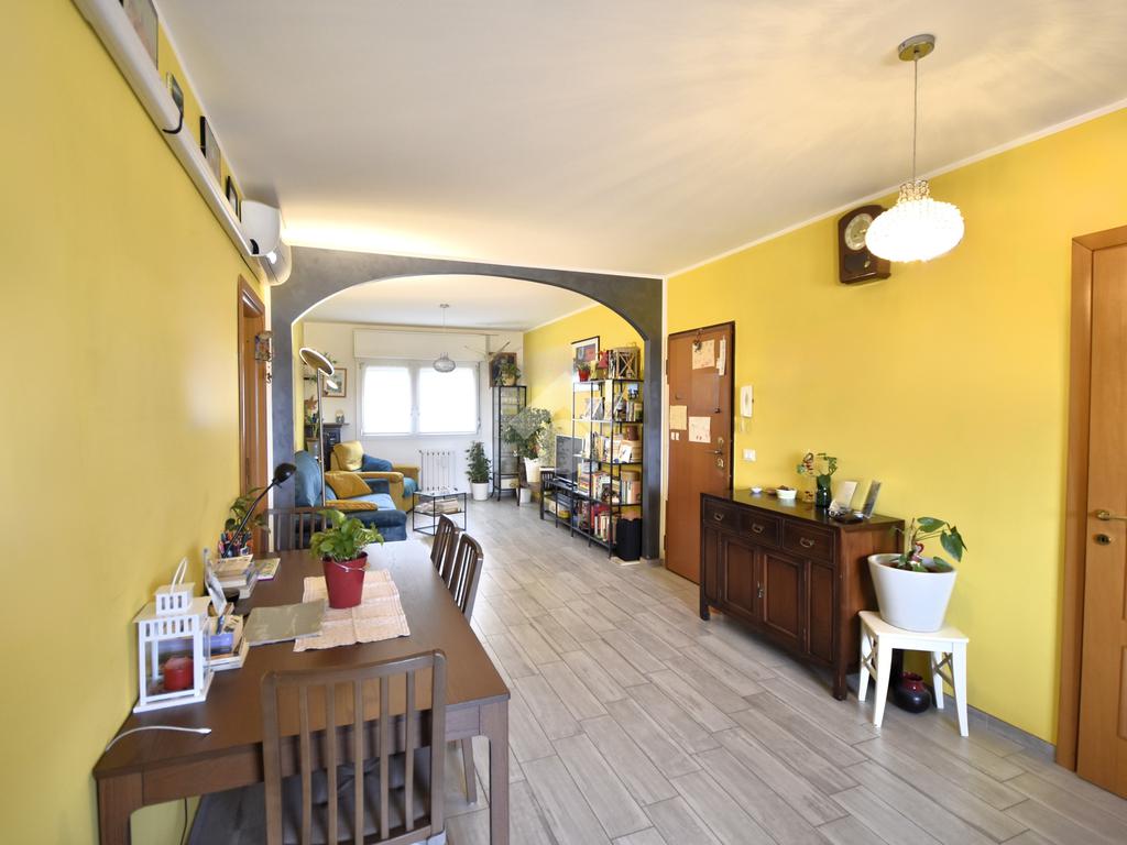 In zona semi-centrale del paese, nelle vicinanze delle scuole e dei servizi primari, proponiamo un appartamento di 85 mq situato al piano terzo con ascensore (piano nobile) dello stabile. L'immobile, ristrutturato nel 2020 in tutte le sue parti, offre ambienti accoglienti e funzionali; è composto da quattro locali: un' ingresso living attraverso un portoncino blindato sull'ampia sala doppia di circa 40 mq, con la possibilità di ripristinare la seconda camera da letto a seconda delle proprie esigenze familiari. Attraverso una comoda porta con apertura a libro, si accede alla cucina abitabile, dalla forma quadrata, consentendo l'utilizzo della mobilia su tre lati della stanza. La presenza di un terrazzo aggiunge un tocco di spazio esterno, ideale per momenti di relax; si accede dalla sala, arricchito di tende da sole estive/invernali, con vano caldaia per la produzione dell'acqua calda igienico/sanitaria. Un disimpegno separa la zona giorno con la zona notte, dove troviamo una camera matrimoniale confortevole, con presenza di ampia finestra, un bagno finestrato con doccia, due comodissimi ripostigli, di cui uno adibito a lavanderia con appositi attacchi idraulici; il secondo ripostiglio è posizionato subito all'ingresso, presente nella sala. La soluzione presenta una pavimentazione e rivestimenti in grès porcellanato nella sua totalità, ad eccezione del parquet nella stanza matrimoniale; impianti elettrico e idraulico rivisti totalmente; serramenti in PVC con vetro camera e aperture a vasistas; porte interne in legno con vetro satinato e zanzariere sulle aperture. L'appartamento è dotato di un sistema di climatizzazione, con due climatizzatori LG inverter, uno posizionato nella zona giorno (sala doppia) e l'altro nel disimpegno della zona notte, garantendo comfort in ogni stagione. Un ulteriore vantaggio è rappresentato dal pannello fotovoltaico personale, con batteria di accumulo da 10 KW, che si affianca ai pannelli fotovoltaici per le parti comuni, assicurando un'efficienza energetica ottimale. Nel 2022 il fabbricato ha subito l'intervento del Superbonus 110%, con il rifacimento facciata, con la realizzazione del cappotto termico, infissi totalmente sostituiti, tetto realizzato nella sua totalità, pannelli fotovoltaici per le parti comuni e a richiesta dei singoli condomini, l'installazione personale dei pannelli come per tale appartamento, con riduzione e netto ammortamento in bolletta. Completa la proprietà un posto auto riservato e di prorpietà. Le spese di gestione a carattere condominiale ammontano per Euro 40,00 circa mensili con acqua a parte a consumo; la quota fissa del riscaldamento del 30 % è pari ad 355,00 annui. Vista panoramica sul centro paese e colline. Possibilità di richiedere un mutuo Green data la sua classe energetica efficiente (A1).