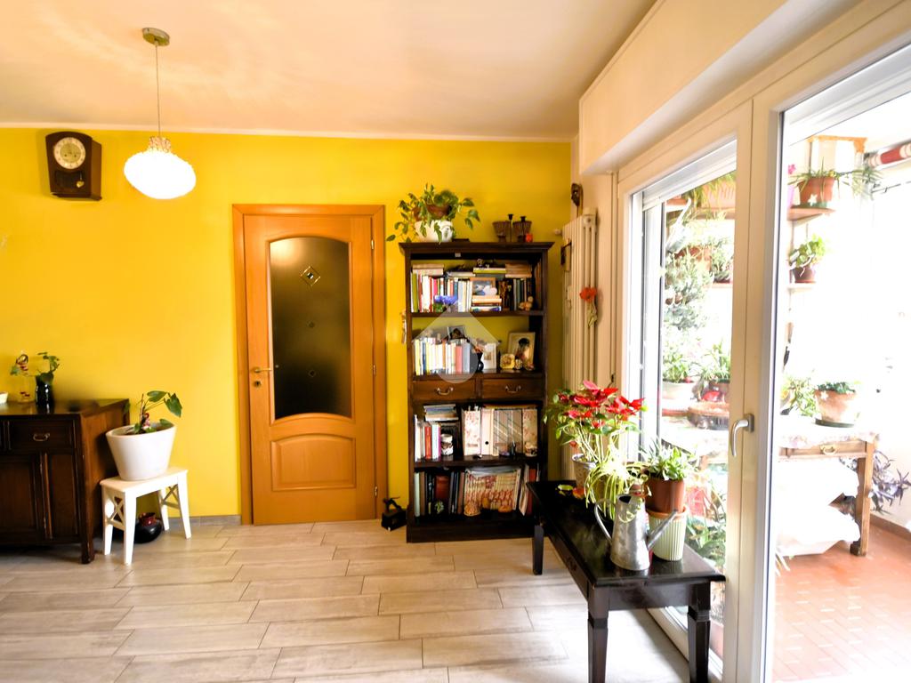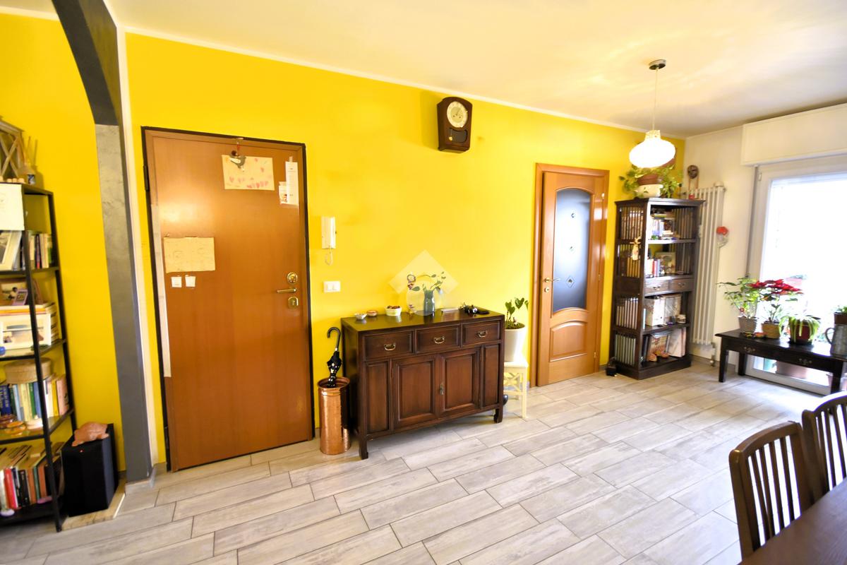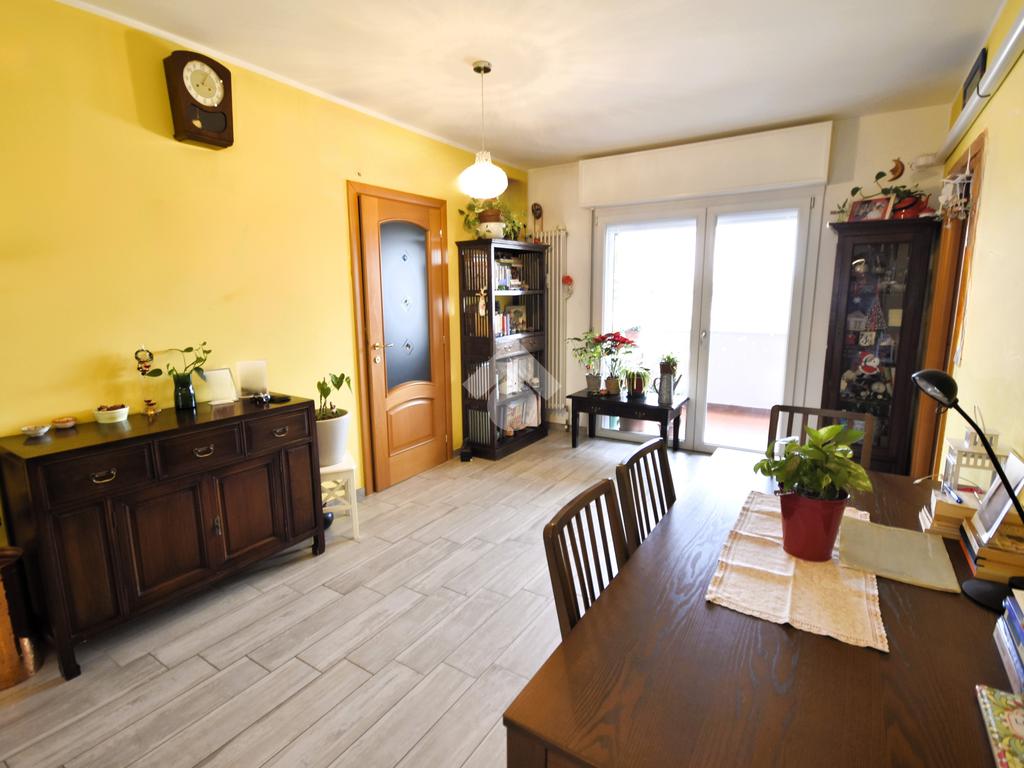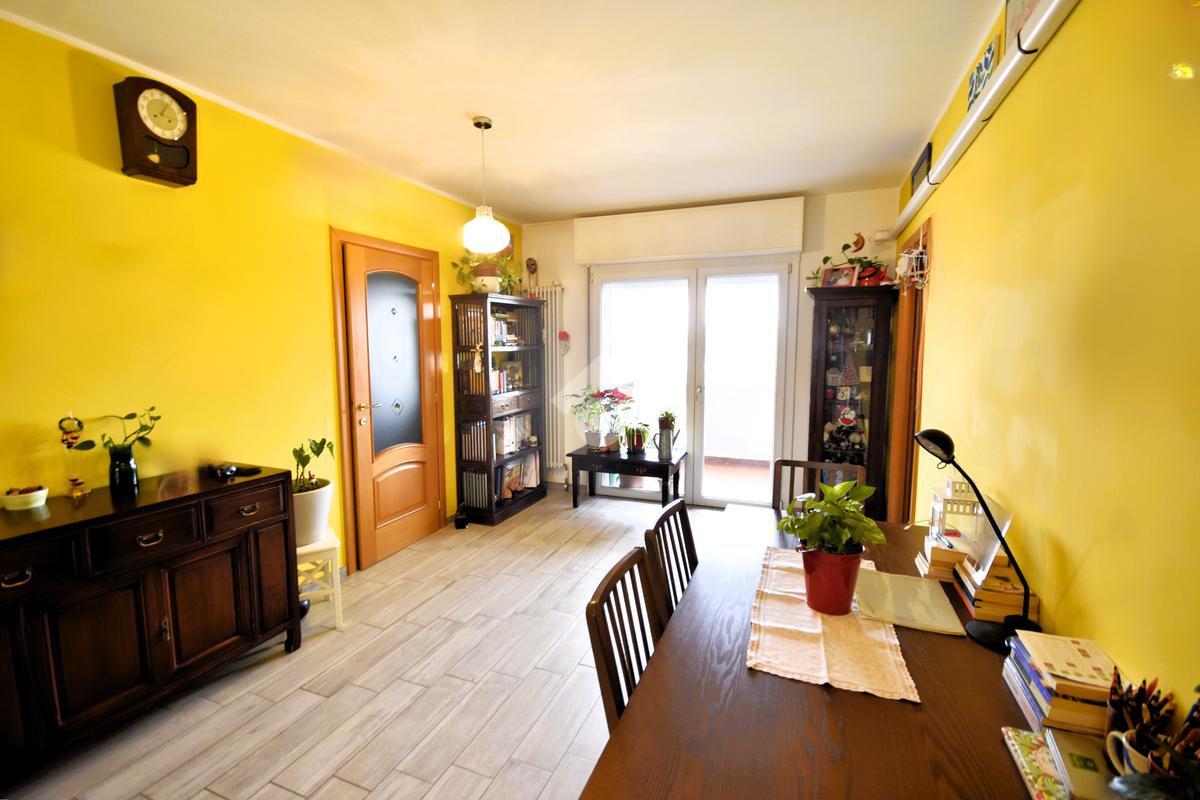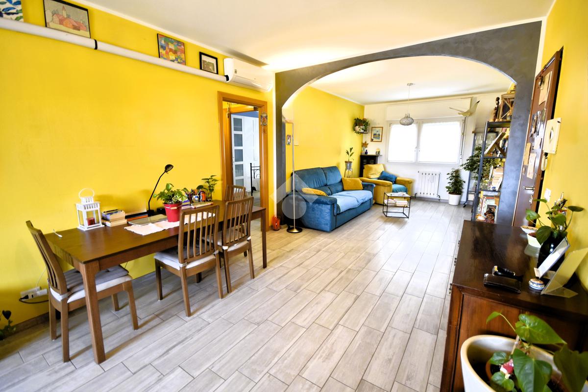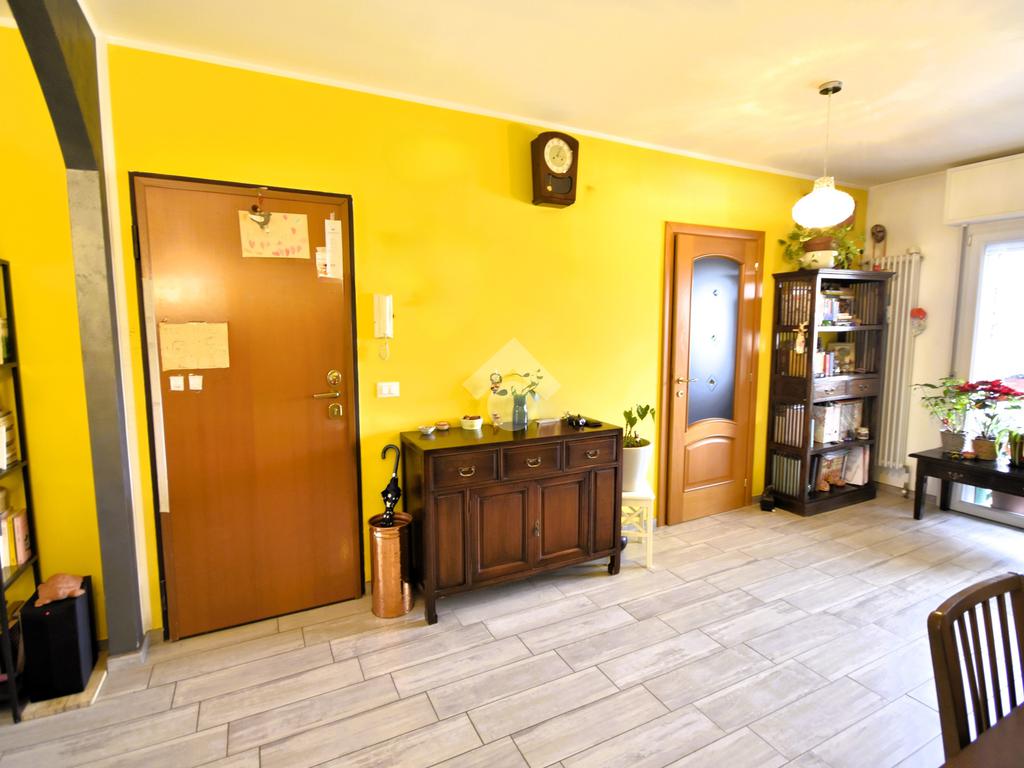 In zona semi-centrale del paese, nelle vicinanze delle scuole e dei servizi primari, proponiamo un appartamento di 85 mq situato al piano terzo con ascensore (piano nobile) dello stabile. L'immobile, ristrutturato nel 2020 in tutte le sue parti, offre ambienti accoglienti e funzionali; è composto da quattro locali: un' ingresso living attraverso un portoncino blindato sull'ampia sala doppia di circa 40 mq, con la possibilità di ripristinare la seconda camera da letto a seconda delle proprie esigenze familiari. Attraverso una comoda porta con apertura a libro, si accede alla cucina abitabile, dalla forma quadrata, consentendo l'utilizzo della mobilia su tre lati della stanza. La presenza di un terrazzo aggiunge un tocco di spazio esterno, ideale per momenti di relax; si accede dalla sala, arricchito di tende da sole estive/invernali, con vano caldaia per la produzione dell'acqua calda igienico/sanitaria. Un disimpegno separa la zona giorno con la zona notte, dove troviamo una camera matrimoniale confortevole, con presenza di ampia finestra, un bagno finestrato con doccia, due comodissimi ripostigli, di cui uno adibito a lavanderia con appositi attacchi idraulici; il secondo ripostiglio è posizionato subito all'ingresso, presente nella sala. La soluzione presenta una pavimentazione e rivestimenti in grès porcellanato nella sua totalità, ad eccezione del parquet nella stanza matrimoniale; impianti elettrico e idraulico rivisti totalmente; serramenti in PVC con vetro camera e aperture a vasistas; porte interne in legno con vetro satinato e zanzariere sulle aperture. L'appartamento è dotato di un sistema di climatizzazione, con due climatizzatori LG inverter, uno posizionato nella zona giorno (sala doppia) e l'altro nel disimpegno della zona notte, garantendo comfort in ogni stagione. Un ulteriore vantaggio è rappresentato dal pannello fotovoltaico personale, con batteria di accumulo da 10 KW, che si affianca ai pannelli fotovoltaici per le parti comuni, assicurando un'efficienza energetica ottimale. Nel 2022 il fabbricato ha subito l'intervento del Superbonus 110%, con il rifacimento facciata, con la realizzazione del cappotto termico, infissi totalmente sostituiti, tetto realizzato nella sua totalità, pannelli fotovoltaici per le parti comuni e a richiesta dei singoli condomini, l'installazione personale dei pannelli come per tale appartamento, con riduzione e netto ammortamento in bolletta. Completa la proprietà un posto auto riservato e di prorpietà. Le spese di gestione a carattere condominiale ammontano per Euro 40,00 circa mensili con acqua a parte a consumo; la quota fissa del riscaldamento del 30 % è pari ad 355,00 annui. Vista panoramica sul centro paese e colline. Possibilità di richiedere un mutuo Green data la sua classe energetica efficiente (A1).