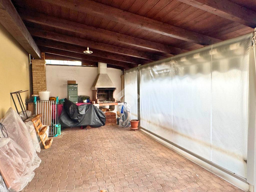 In un contesto di sole due famiglie privo di spese condominiali, proponiamo appartamento di 100mq al piano rialzato (primo fuori terra), completamente ristrutturato, sito nel centro del paese e comodo a tutti i servizi del paese. L’ingresso conduce ad un ampio soggiorno di circa 30mq accessoriato di climatizzatore Daikin 18.000 Btu e predisposizione canna fumaria per camino o stufa; cucina abitabile dalla forma rettangolare con parete attrezzata lineare. Sia dal soggiorno che dalla cucina si accede ad un ampio balcone accessoriato di tenda da sole estiva. Un disimpegno ci conduce alla zona notte composta da due camere da letto entrambe di generosa dimensione, con presenza di ampie finestre. Il bagno è accessoriato di doccia e finestra, ristrutturato nel 2018 con materiali di pregio, dotato di termo-arredo e data la sua spaziosa metratura offre la possibilità del doppio lavabo, completo anche di armadio a muro utile come deposito accessori. Termina il piano abitativo un comodo ripostiglio. Al piano semi-interrato troviamo una cantina dalla forma quadrata finestrata, con attacchi lavanderia e un box auto singolo di 18mq con basculante a due ante. Un vano tecnico con caldaia a condensazione sostituita nel 2023 ed una tettoia/posto auto di 30mq verandata con tende da sole estive e invernali all’interno del cortile, terminano il piano sottostante. Tettoia comoda per momenti di intrattenimento con barbecue al suo interno, dotata di canna fumaria. L’immobile gode di molteplici confort: pavimenti/rivestimenti in gres porcellanato, infissi con vetro camera realizzati esternamente in alluminio color legno e internamente in legno con apertura vasistas/basculante, il riscaldamento è autonomo e indipendente con caldaia a condensazione della Beretta; portoncino blindato; condizionatore Daikin freddo/caldo da 18.000 Btu con motore esterno; zanzariere sulle aperture; bagno completamente ristrutturato nel 2018; predisposizione camino/stufa in sala con apposita canna fumaria al momento coperta. La soluzione è priva di spese a carattere condominiale e la sua posizione centrale favorisce la comodità ad ogni singolo servizio e ai mezzi di trasporto pubblici.